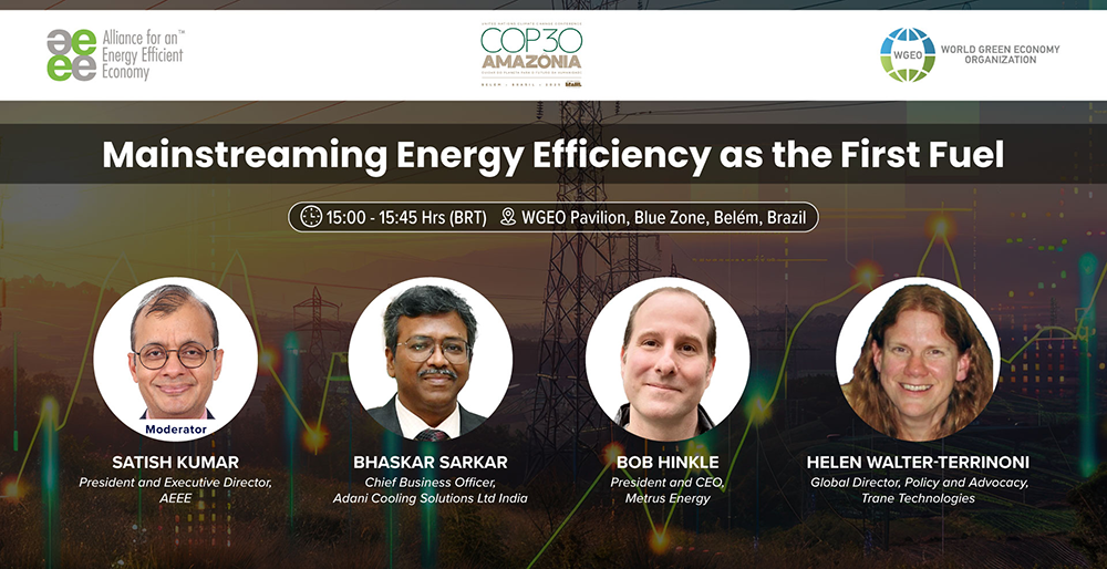 At the UNFCCC’s 30th Conference of the Parties (COP 30), AEEE will focus on advancing the global ambition to double the rate of energy efficiency improvement by 2030, a key enabler of net-zero pathways. Through its active role in high-level discussions, partnerships, and thematic sessions and side events, AEEE will highlight the role of energy efficiency as the “first fuel” for sustainable growth. The alliance will focus on advancing cross-sectoral collaboration, promoting investment in efficient technologies, and showcasing India’s leadership in the decarbonisation of the built environment, cooling, MSMEs, and other priority sectors. AEEE’s contributions aim to inspire evidence-based policymaking and scalable implementation strategies that drive inclusive, low-carbon development aligned with global climate action.